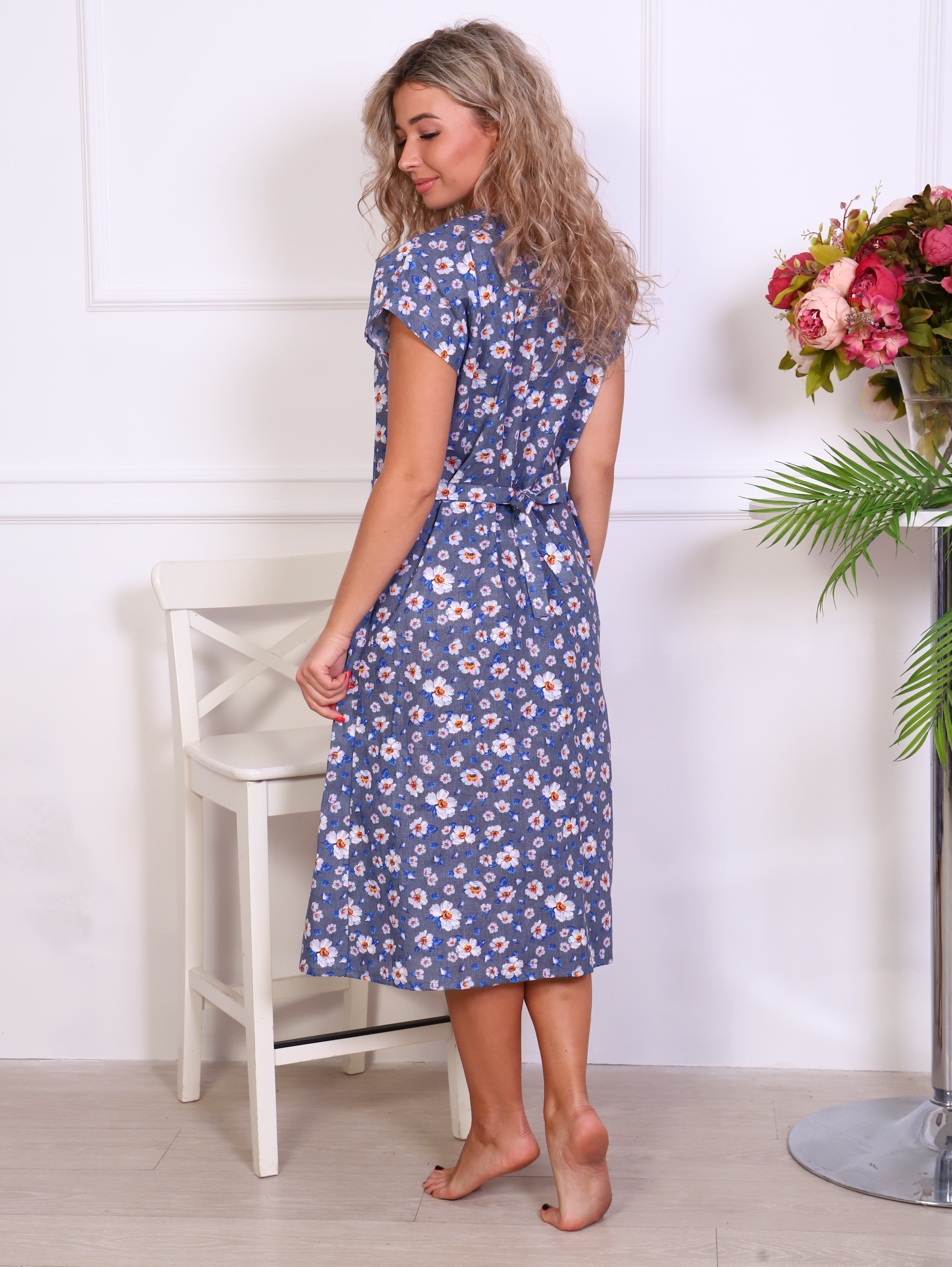 Женский халат из бязи на запах светло-серый